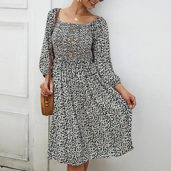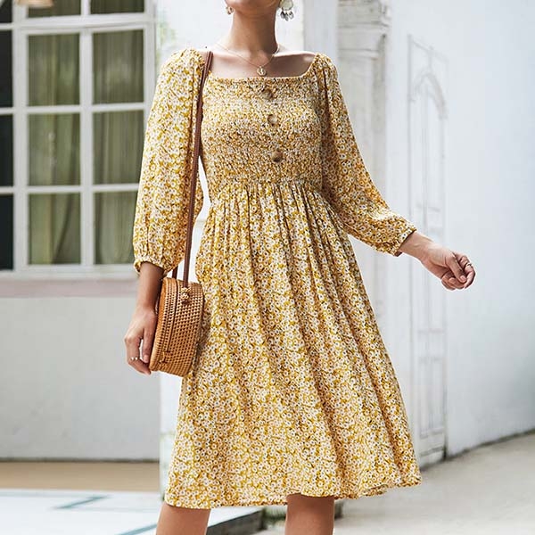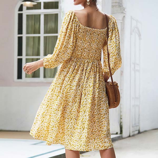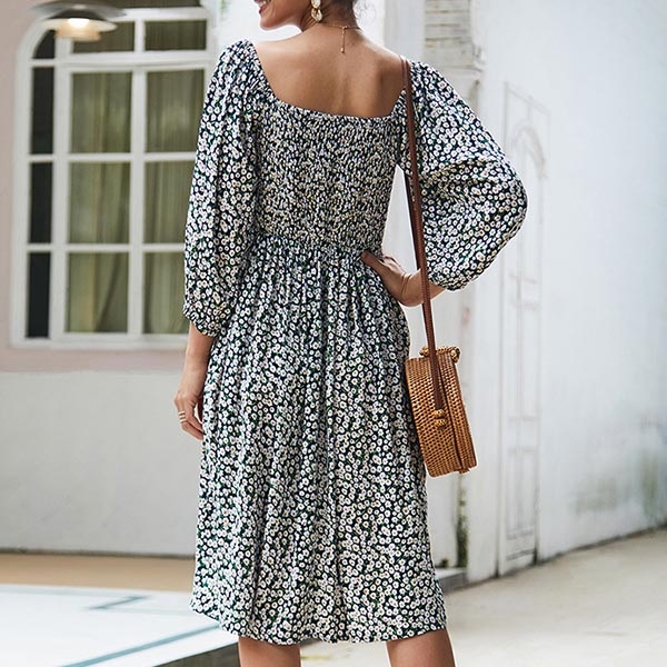 print details,the lantern sleeve and square collar design will further enhance its charm.