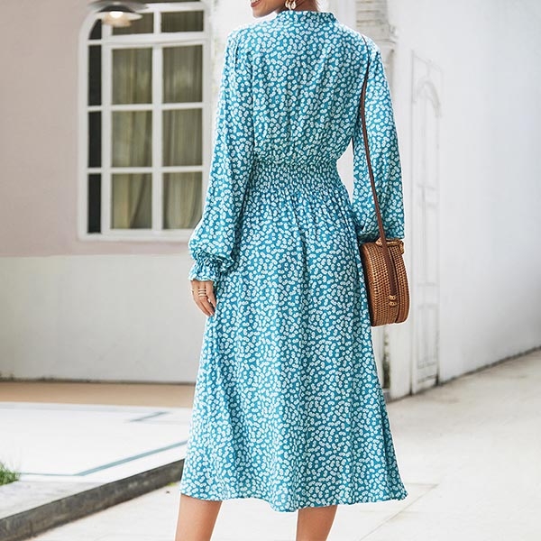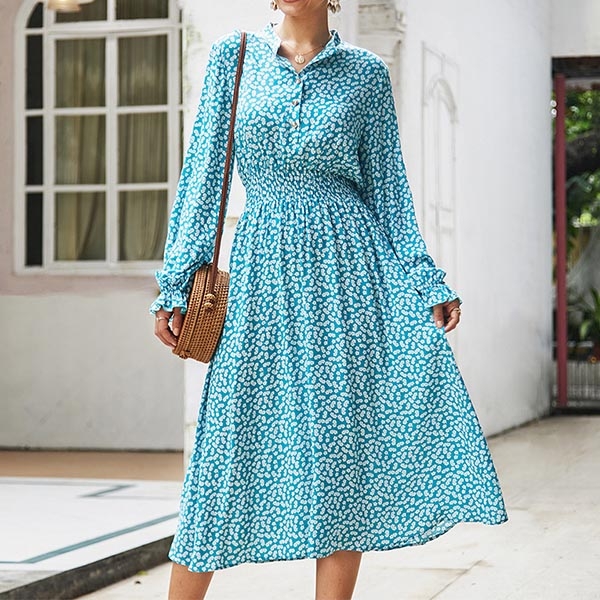Features vibrant floral print,with long sleeve and high waist design,this dress not only can showcase your