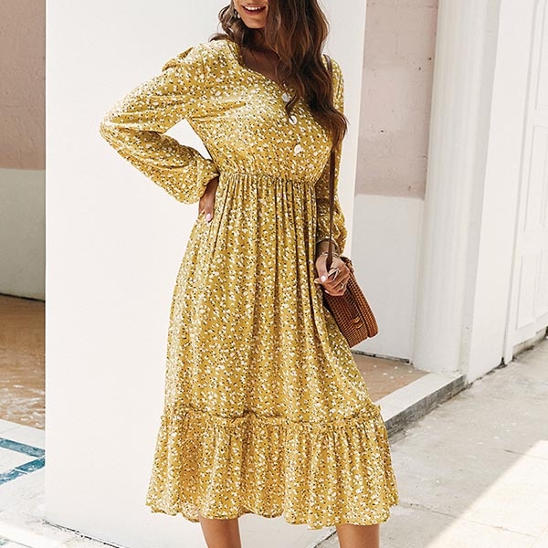 Add a dash of fresh and sweet vibes to your wardrobe with the help of this dress. Boasts vibrant floral