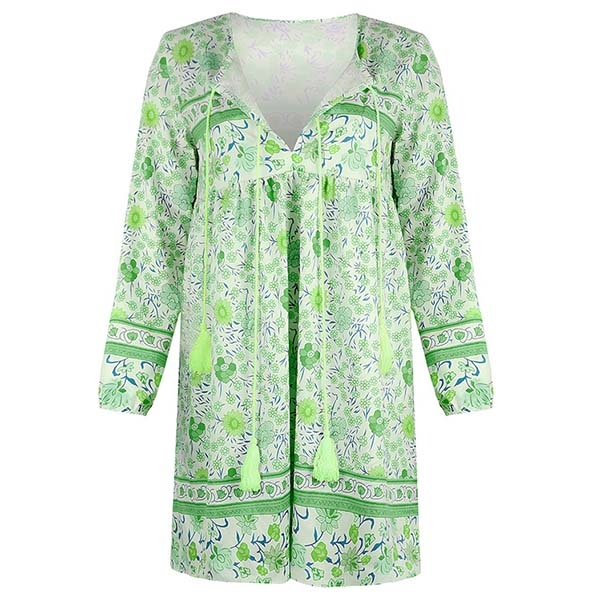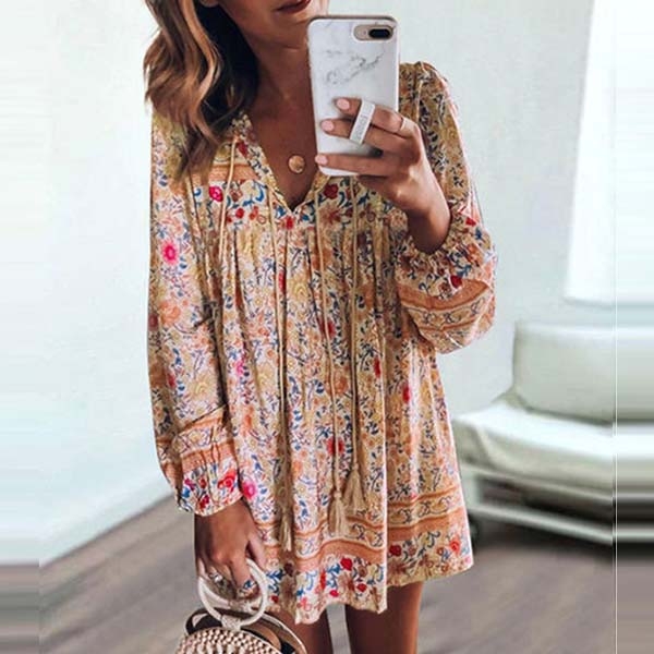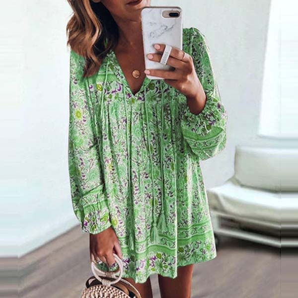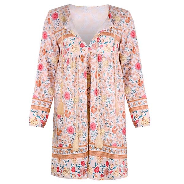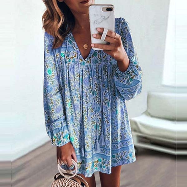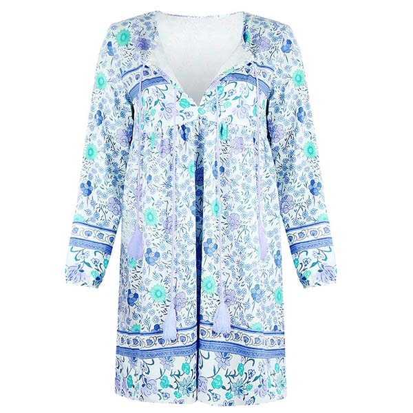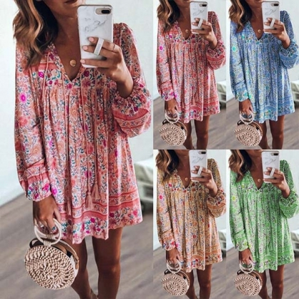eye-catching printed details,with long sleeve,v-neck and a loose silhouette design,this piece