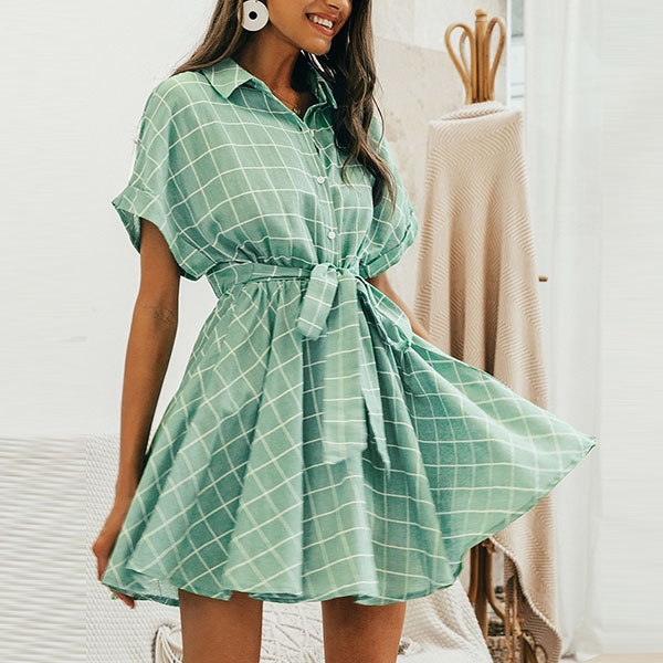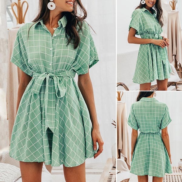 stylish and popular. Finished with short sleeve and POLO collar design,this dress not only