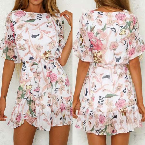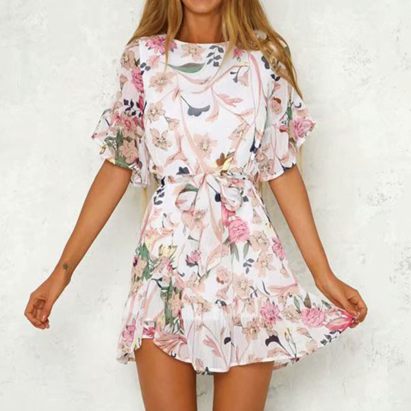 accompanied with short sleeve,round neck and ruffle hem,this dress is a perfect choice for your