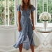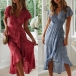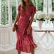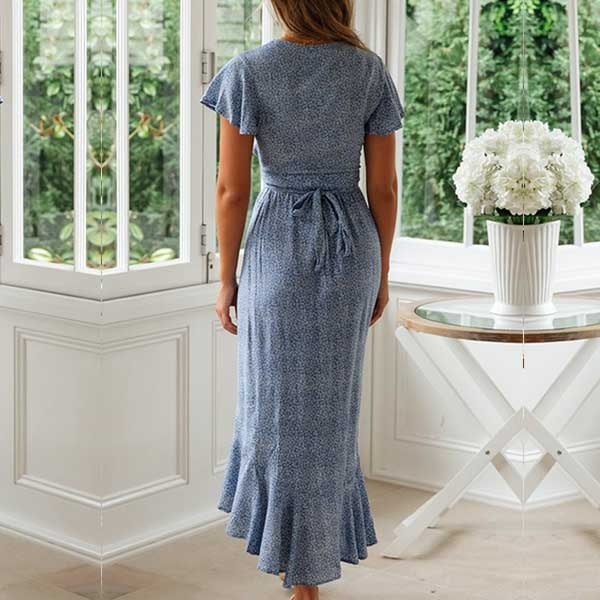 outfitted with short sleeve,v-neck and an irregular ruffle hem,this dress makes it easy for any