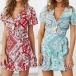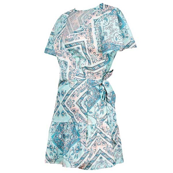 It features chic and eye-catching printed details,with short sleeve and v-neck design,this dress makes