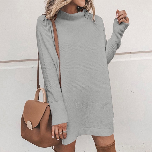 It is finished with solid color,long sleeve,mock neck and a loose silhouette,this knit dress can keep you warm