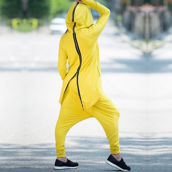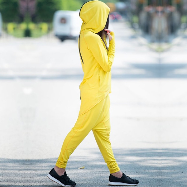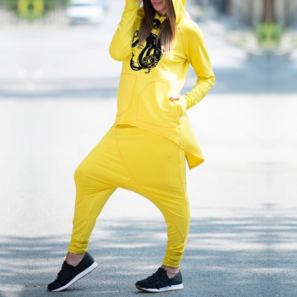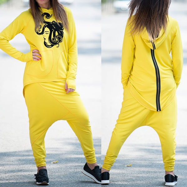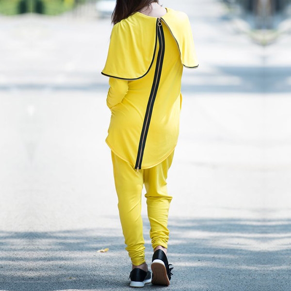 Your hip-hop style can have a full display in this two-piece set. It comes with a bright yellow tone,including
