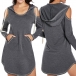 with a U shape neckline, a drawstring hood, come with open shoulder design, long sleeves,