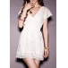 The white dress is a sexy lace piece that most ladies can't resist.It features a solid colorway,all-over crochet lace details,a deep V-neck,short sleeves and an elasticated belt to well curve your waist.