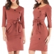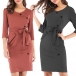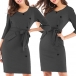 It boasts a solid color,finished with 3/4 sleeve,v-neck and a fit silhouette,this dress can portray your