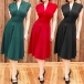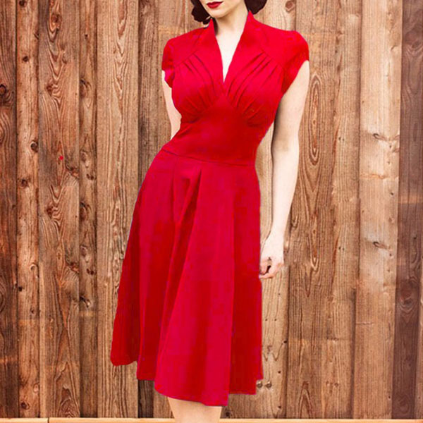 Features a solid color,cap sleeve,v-neck and high waist design,this dress not only can portray