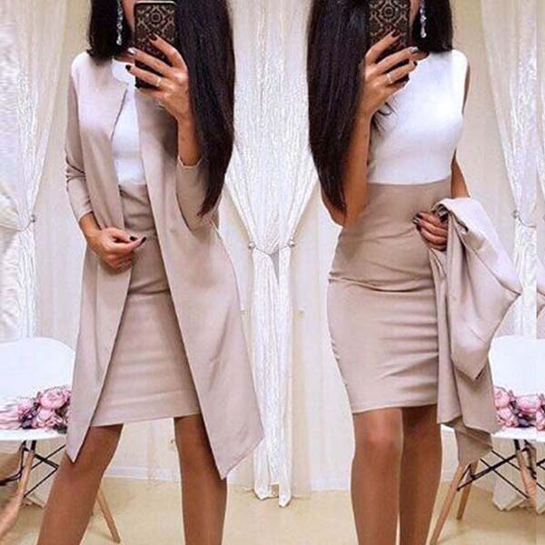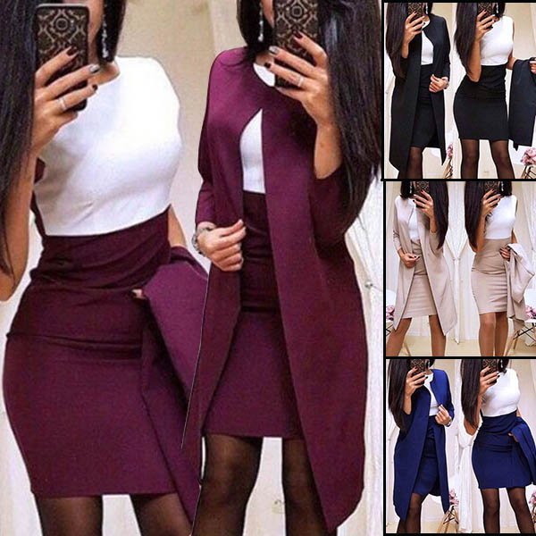 Den består av en långärmkofta och en ärmlös klänning med smal passform, det här tvådelade setet vet definitivt