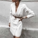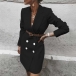 elegant and confident side. Solid color style,finished with long sleeve,double-breasted and