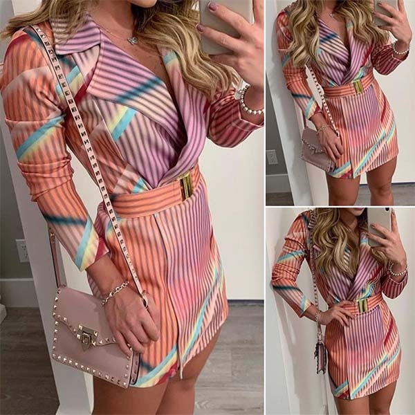 Designed with striped element,finished with long sleeve,notched lapel and a fit silhouette,this piece