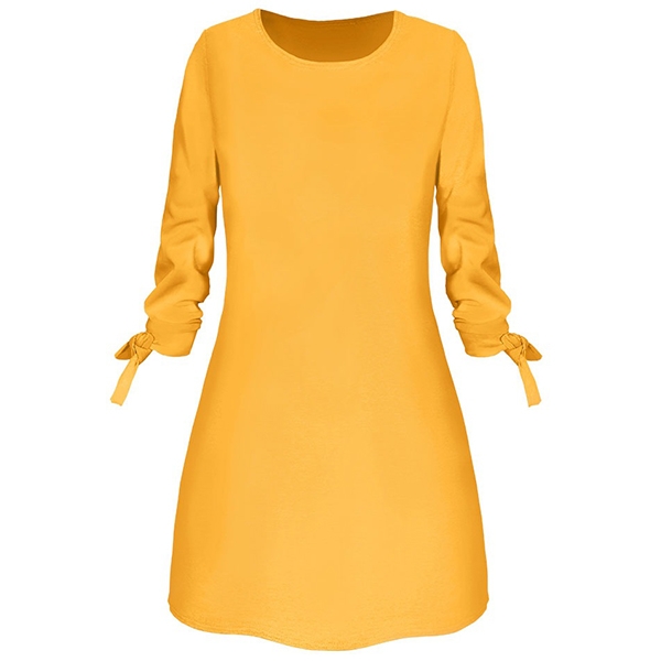 That why we suggest you this dress. Solid color style,with long sleeve and round neck design,the knotted design