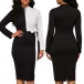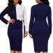 image have a full display. Contrast color style,finished with long sleeve,round neck,high waist and a fit silhouette
