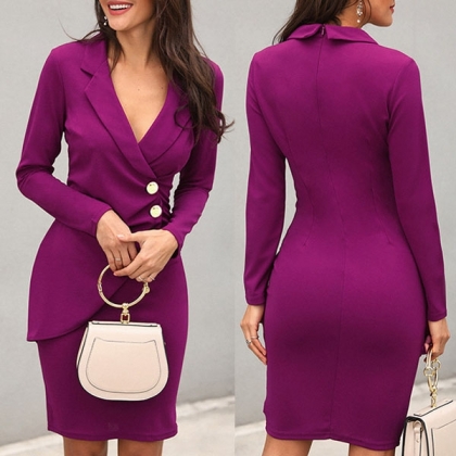 It comes with a noble purple tone,finished with long sleeve,notched lapel and a fit silhouette,this