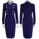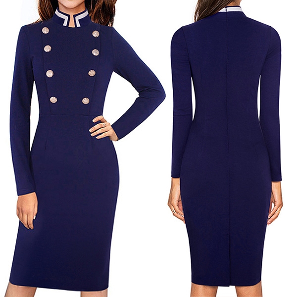 solid color,accompanied with long sleeve,stand collar,double-breasted and a fit silhouette,this pencil