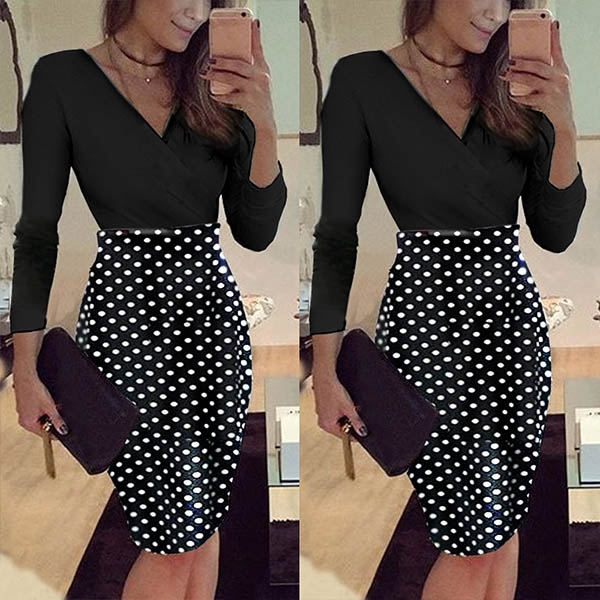 Finished with long sleeve,v-neck and a fit silhouette,this dress knows how to demonstrate