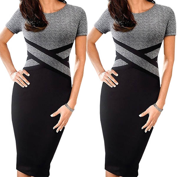 For your work occasions,this delicate yet elegant dress can be your wise choice. Contrast color design makes it look not so simple and monotonous,while