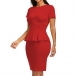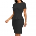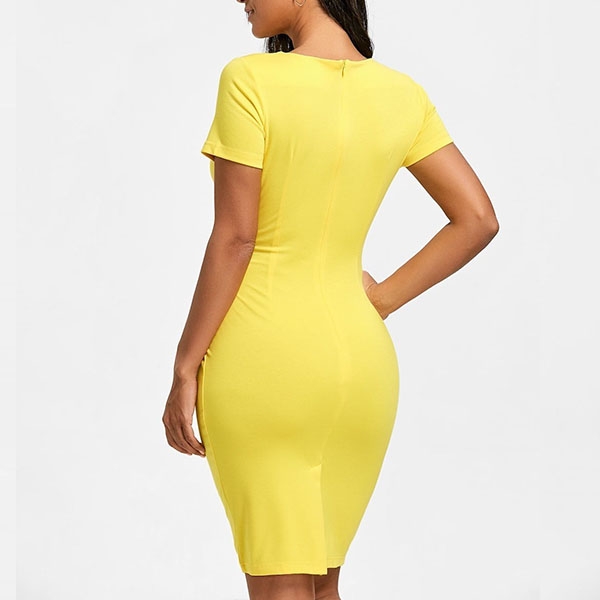 Boasts a solid color,finished with short sleeve,v-neck and a fit silhouette,this dress