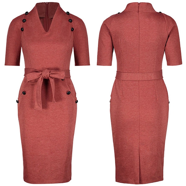 During your workdays,you can display your elegant and confident side through this delicate pencil dress.