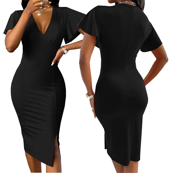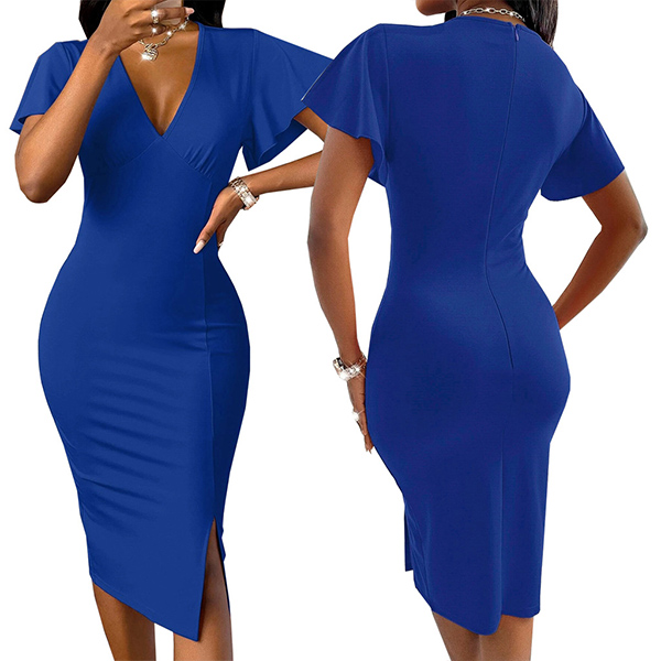 For these office ladies,this delicate and elegant pencil dress would be a good choice. Features a solid color,finished with short sleeve,v-neck and a fit silhouette,this dress not only can showcase your perfect curve,but also can express your elegant and confident side. It is a wise choice to invest this dress.