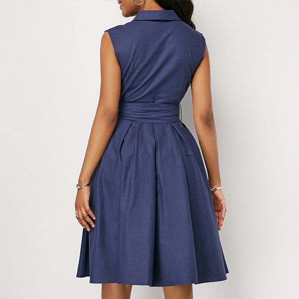 at this dress? It comes with a solid color,delicate yet elegant. Finished with sleeveless and notched lapel,