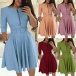 solid color,finished with 3/4 sleeve,round neck and high waist design,this dress can showcase your