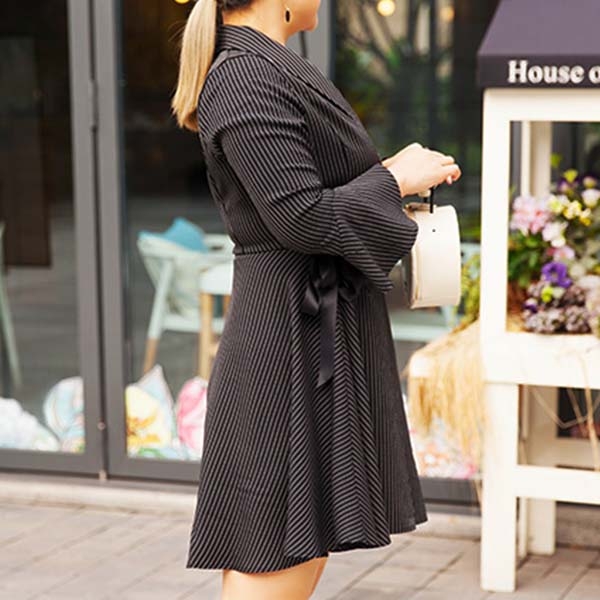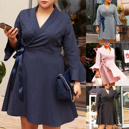 this dress! Striped style,the trumpet sleeve and v-neck design will further enhance your feminine appeal.