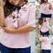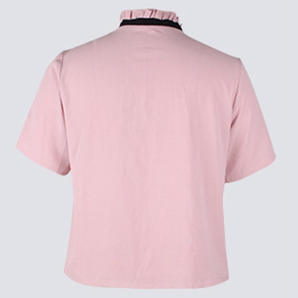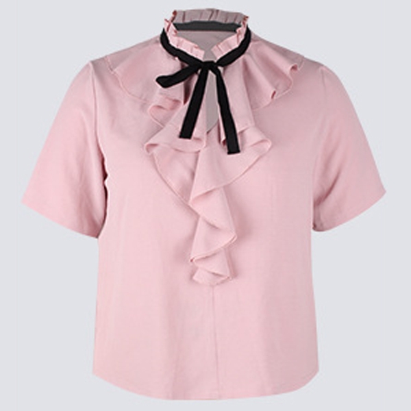 This blouse comes with a sweet pink tone,finished with short sleeve and ruffle design,which can