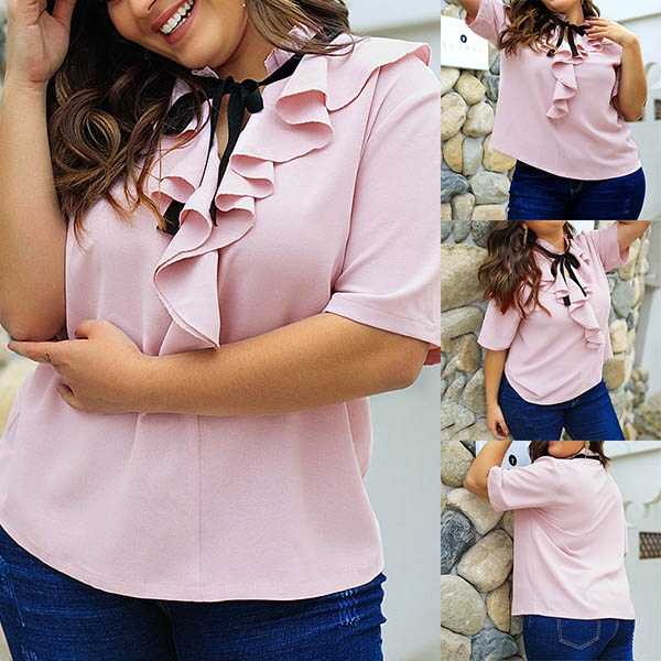 Sweet Style Short Sleeve Ruffle Oversized Plus-size Blouse