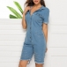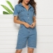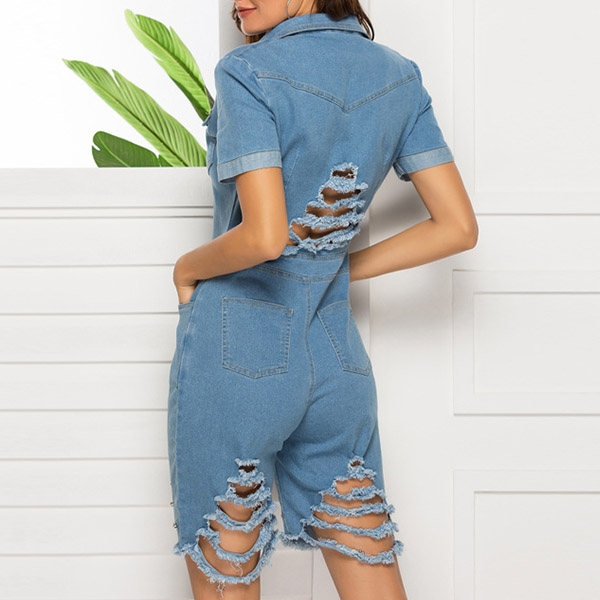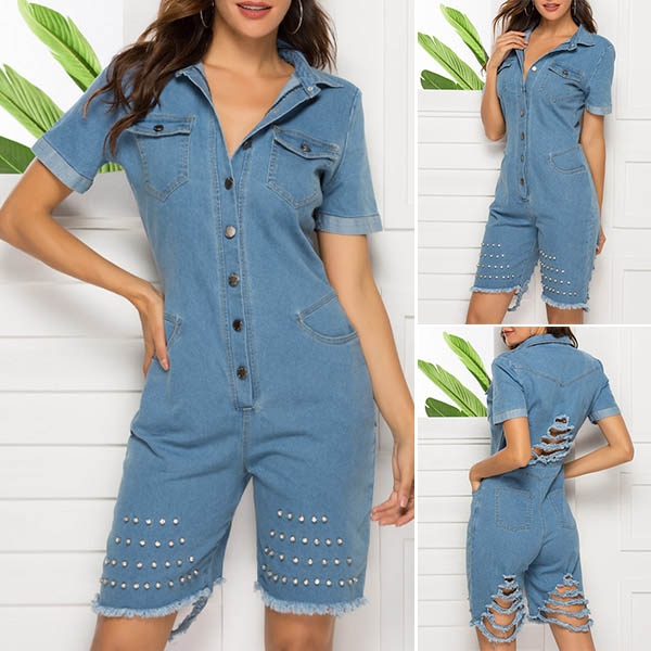 You can easily win more eyes when you slip into this denim romper. It is finished with short sleeve