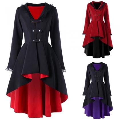 design details like high-low hem,back lace-up design and lace spliced details make this piece look so distinctive