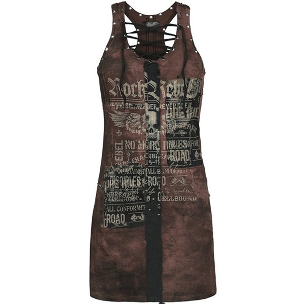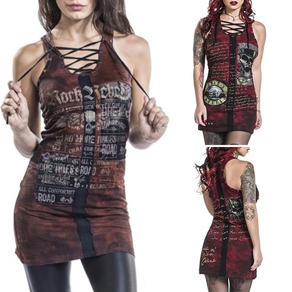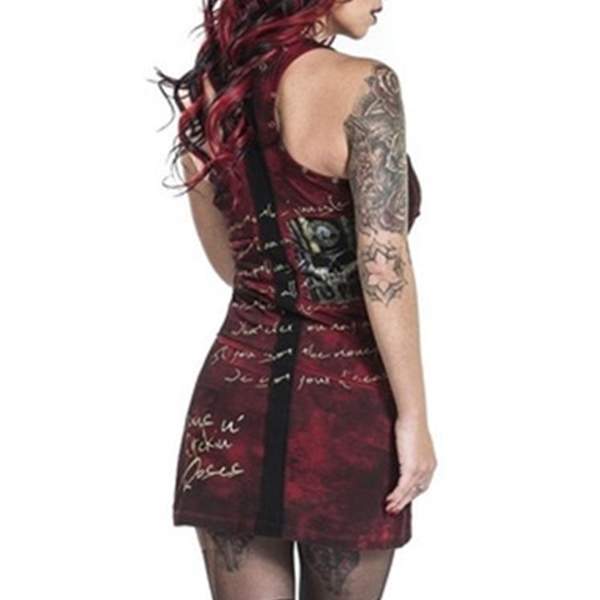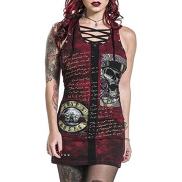 You can have a retro yet stylish style in this dress. It features chic skull head printed pattern,