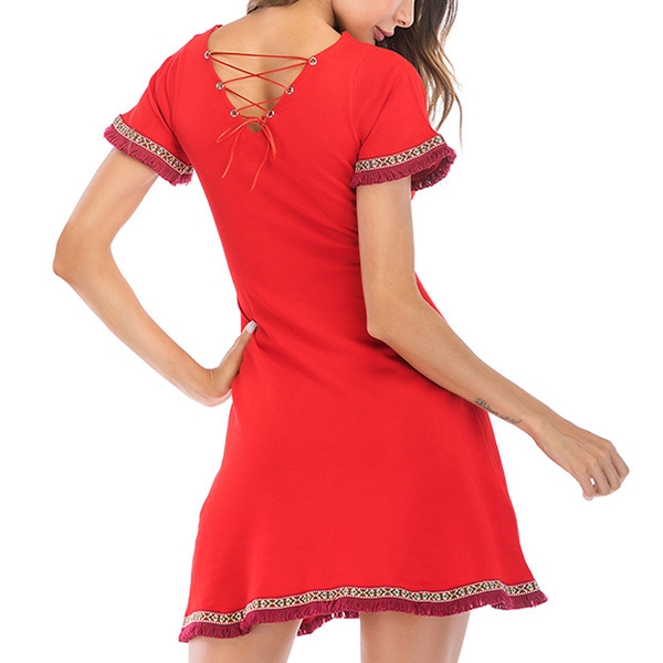 the lace-up design at the back side and v-neck design will make this piece look sexier,and the tassel details