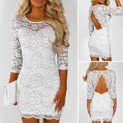 Add a dash of sexy and flirty vibes to your wardrobe with this lace dress. Finished with 3/4 sleeve and