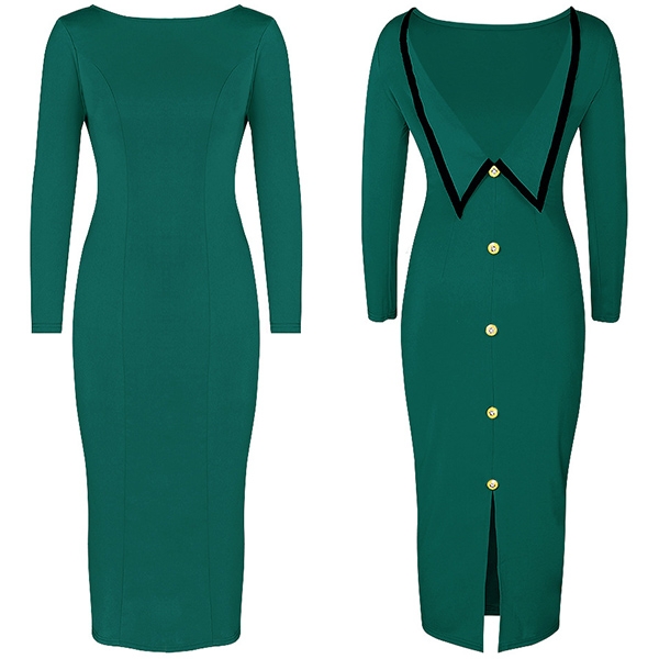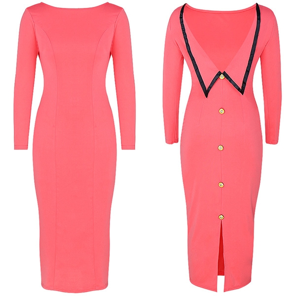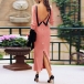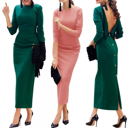 while the backless and back-slit hem design make this piece look so sexy and alluring.