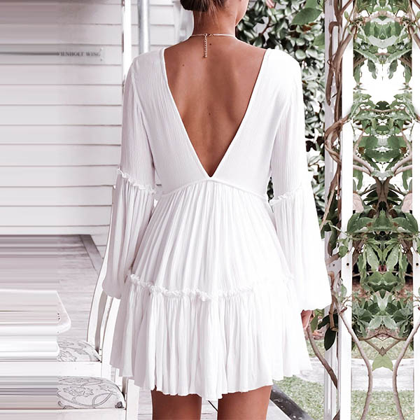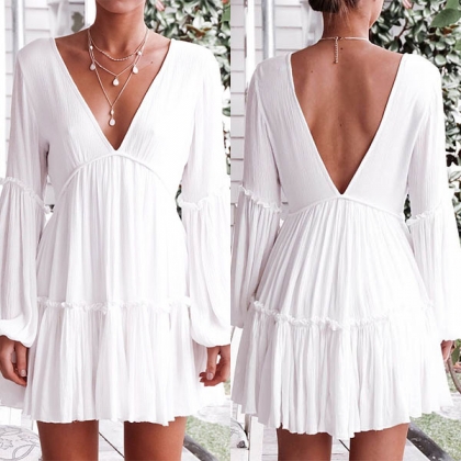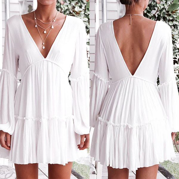 den rygglösa, djupa v-ringningen och lanternärmdesignen gör att denna pjäs ser så sexig och distinkt ut.