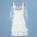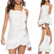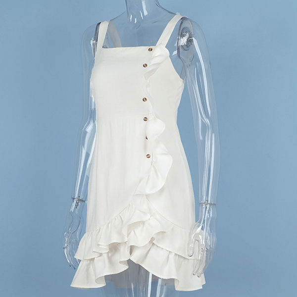 button front design, a double layer ruffled tulip hem, cami straps, backless. Matching with a pair of