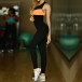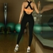sports jumpsuit. Contrast color style,designed with backless and a fit silhouette. And its soft