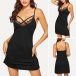 crossover v-neck and lace spliced design make this piece look so sexy and alluring.