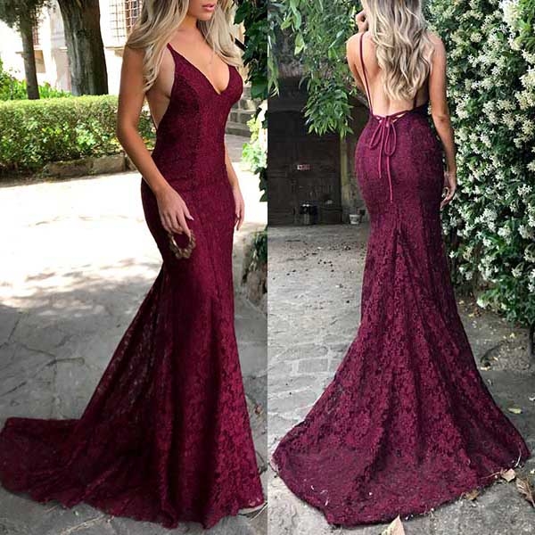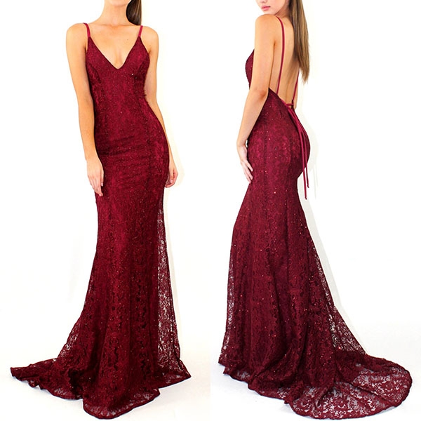with backless,deep v-neck and floor-length hem design,this alluring dress also can exude your charming