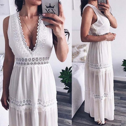 Going with some stunning details such as backless,deep v-neck and lace spliced details,this sultry