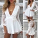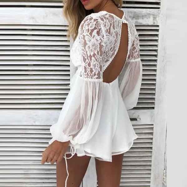 The backless,deep v-neck and lace spliced lantern sleeve design make this piece look so sexy and alluring.