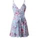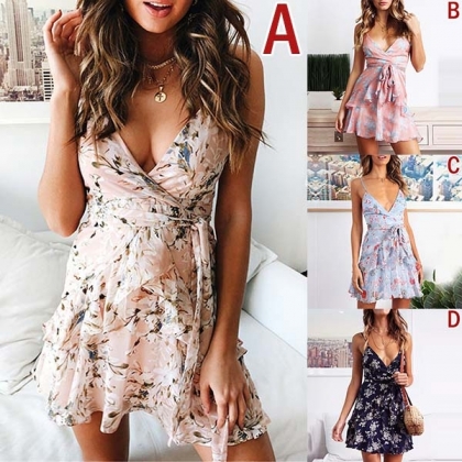 deep v-neck and ruffle hem design,sexy and alluring. Moreover,the vibrant floral print details