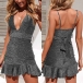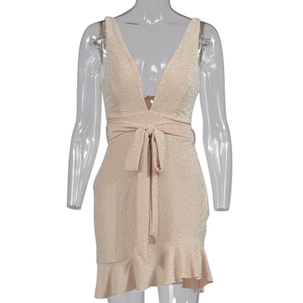 deep v-neck and ruffle hem design make this piece look so sexy and alluring. The high waist