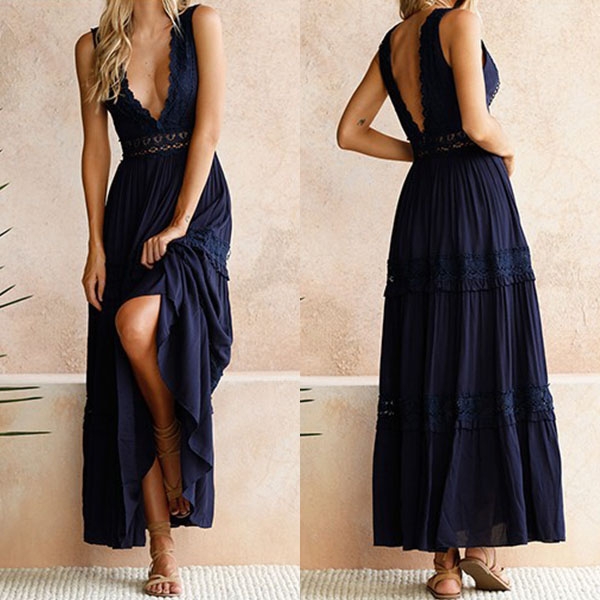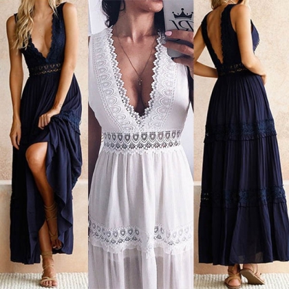 The backless,deep v-neck and lace spliced design make this piece look so sexy and alluring. The high