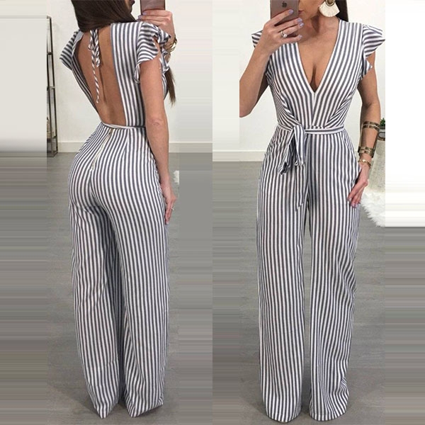 Du kommer säkerligen att vinna fler ögon när du tar dig in i denna fantastiska jumpsuite!Randig stil, den rygglösa och djupa