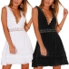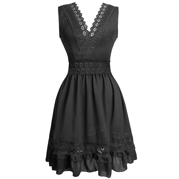 details like backless,deep v-neck and lace spliced design make this piece look so sexy and alluring.