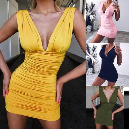 and deep v-neck design can offer you a more alluring look,and the tight silhouette and mini length